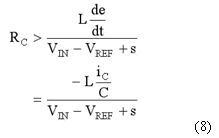 其中,iC是輸出電容器的電流,它在0A的穩態點周圍產生紋波。將2ICMAX定為紋波電流iC的峰到峰的最高值。那當s>0時,要獲得ds/dt<0的足夠條件為: