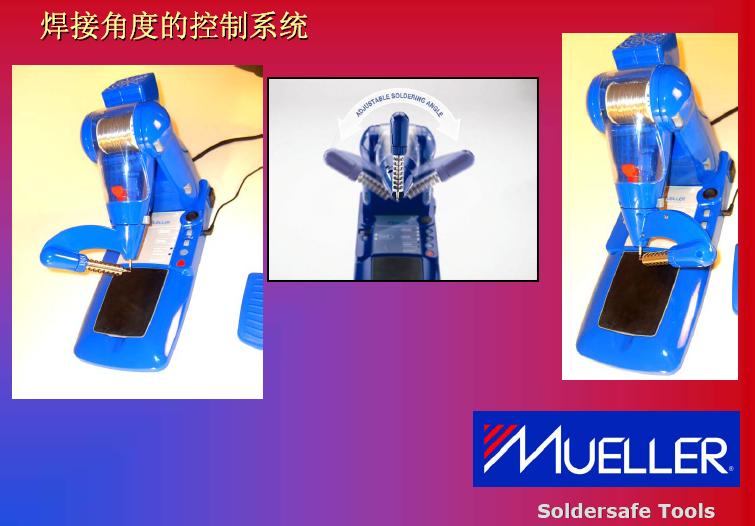 我們對角度的控制,可以左右擺動,可以升降。通過這樣一個系統(tǒng)性的變更之后,我們把這個產(chǎn)品的工藝發(fā)生了一些革命性的變化,將焊嘴和焊芯直接控制在機(jī)器上面,用腳來操作。采用這種工藝,可以提高工作效率150%到200%。這都是通過預(yù)熱來達(dá)到,可以達(dá)到一個比較穩(wěn)定的控制點(diǎn)。