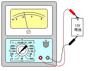 測量直流電壓:--首先估計一下被測電壓的大小,然后將轉換開關撥至適當的V量程,將正表棒接被測電壓“+”端,負表棒接被測量電壓“-”端。然后根據該擋量程數字與標直流符號“DC-”刻度線(第二條線)上的指針所指數字,來讀出被測電壓的大小。如用V300伏檔測量,可以直接讀0-300的指示數值。如用V30伏檔測量,只須將刻度線上300這個數字去掉一個“0”,看成是30,再依次把200、100等數字看成是20、10既可直接讀出指針指示數值。例如用V6伏檔測量直流電壓,指針指在15,則所測得電壓為1.5伏。