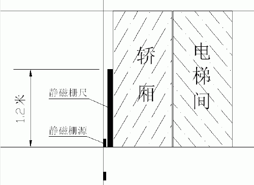 要使電梯到達平層區(qū)域后能自動平層,必須有一套自動控制系統(tǒng),即電梯的自動控制裝置。該裝置的控制部分是靜磁柵位移傳感器,以30層電梯為例,安裝圖如下圖所示。