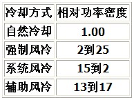 表1給出了各種冷卻方式下的典型功率密度。