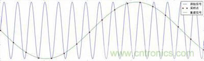 簡單溫習奈奎斯特采樣定理:如果信號是帶限的,且采樣頻率Fs高于信號最高頻率Fmax的兩倍,采樣樣本中完整地保留了原始信號中的信息。而高于或等于采樣頻率的一半頻率分量,則會導致混疊現象,如圖 5所示由于采樣頻率過小,每個信號周期樣本數量太少,重建后的波形頻率分量落到低于采樣頻率的頻率范圍中,與原始信號大相徑庭。