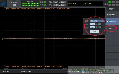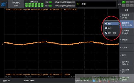 第四步,找到了想要觀察的波形幀之后,可以通過“FORM按鍵調整界面的窗口時間,對波形進行任意放大或縮小”并可以調出光標測量任意兩點的橫縱軸數(shù)據(jù)。看到這里我相信大部分人已經可以找到自己想要看的波形了。但是想要把波形存儲記錄下來怎么辦,而且想要長時間記錄可以實現(xiàn)嗎?不要急,PA功率分析儀還提供波形保存記錄功能。