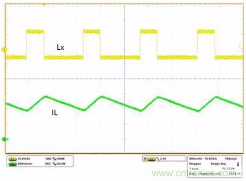 圖6. ISL85415EVAL2Z在VIN=12V、VO=-5V、IO=-300mA時(shí)的工作波形