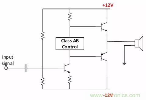 雙電源放大器比較常見,因?yàn)樗矢撸軌蛟诓粚?dǎo)致DC損耗的前提下復(fù)制輸入波形。圖11A顯示了具有±12V軌的音頻放大器,圖11B顯示了具有±5V軌的運(yùn)算放大器。