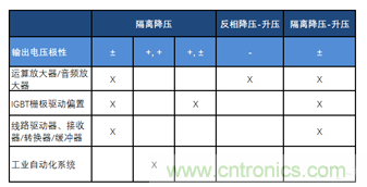 正如以上討論的,根據(jù)不同的輸入電壓軌,設(shè)計(jì)工程師可以選擇不同的拓?fù)洌瑏硖峁┻m用于各種應(yīng)用的電源軌。表1總結(jié)了適合不同應(yīng)用的拓?fù)洹?/div>