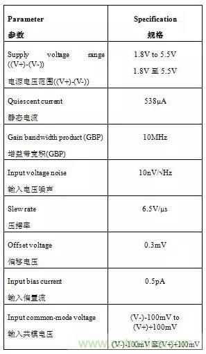 TLV906x系列高性能通用放大器可用于成本敏感型的低側電流感應系統(tǒng),因為其增益帶寬(10MHz)、壓擺率(6.5V/µs)、偏移電壓(0.3mV)以及輸入共模電壓范圍為負電源電壓以下100mV。下表中列出了一些TLV906x系列的技術參數(shù)。