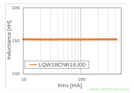圖2.電感值-AC電流(Irms)特性