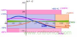 圖一,I類和II類MLCC的溫度特性和隨溫度的電容變化