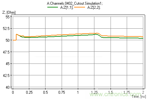 圖5圖6對比,發現未處理之前阻抗的跳躍很明顯,隔層處理后的阻抗改善很多,幾乎沒有任何階躍與不連續。