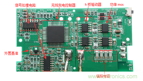 這種SoC方案下,PCB上只有一顆大芯片,和兩個MOS管,相當簡潔。SOC內部集成了無線充電驅動,H橋驅動器,運放,內置溫度保護功能等,一顆芯片實現所有功能,可有效控制成本和精簡生產流程。