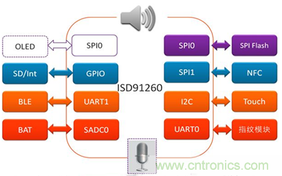 大聯大品佳力推的Nuvoton ISD® 91200系列是一款嵌入式ARM® CortexTM-M0 32位微控制器內核系統級芯片產品,具有針對低功耗,音頻用戶界面應用優化。其中嵌入了高達50 MHz的CortexTM-M0內核,64K/128KB flash memory和12KB的嵌入式SRAM。它還配備了各種外設,如定時器、看門狗定時器(WDT)、實時時鐘(RTC)、外設直接存儲器訪問(PDMA),各種串行接口(UART、SPI/SSP、I2C、2S)、PWM調制器、GPIO、LDO、SDADC、SARADC、DPWM、Low Voltage detector and brow-out detector。其ADC系列可選為Sigma Delta ADC或Bridge Sense ADC。