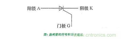 晶閘管也是一個三端器件,按照現有的應用習慣,其三個端子定義為陽極(A,anode)、陰極(K,cathode)和門極(G,gate)。晶閘管的符號以及對應三個端子的定義如圖1所示。