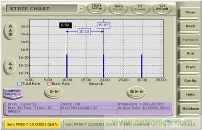 圖5:使用Strip chart功能記錄整個(gè)長(zhǎng)時(shí)間老化過(guò)程誤碼變化