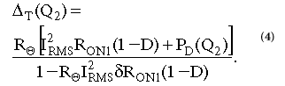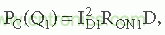 其中I D是漏極電流,R ON是制造商規定的標稱環境溫度下的溝道電阻,D是Q 1的占空比。