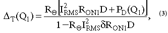 其中δ是R ON的溫度系數,單位為°C -1,P D是動態損耗項,與R ON無關。