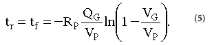 當V G達到V P的 99%時,MOSFET完全導通。如果將此關系替換回公式5,則上升和下降時間將減少為: