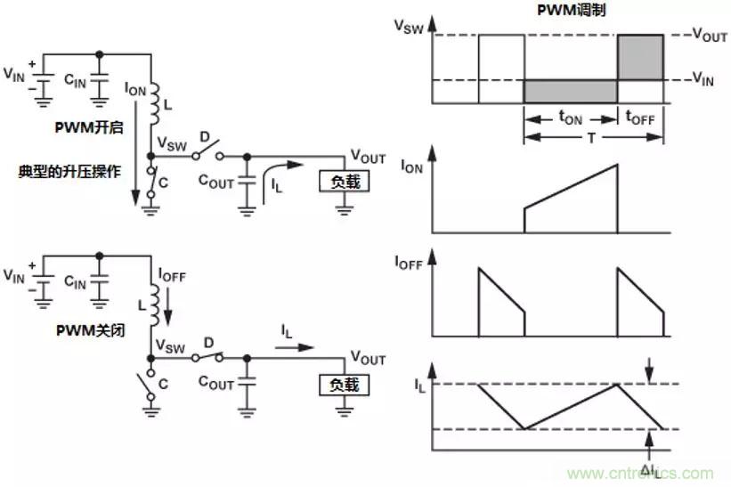 占空比 = 開關(guān)開通的時(shí)間/ 工作同周期。開通和關(guān)閉開關(guān)影響了電感能量的儲(chǔ)存和釋放,從而影響輸出的電壓。