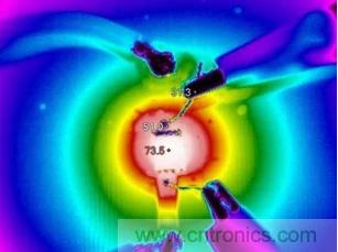 將10cmX10cm的二層PCB板的覆銅改為1OZ,重復上面實驗,測量的溫度如下圖所示。