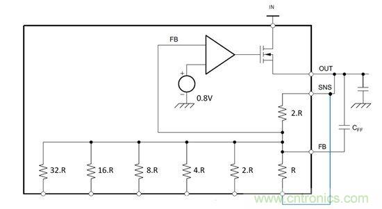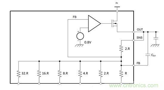 開始提到的四款器件還有一個(gè)特征,即能將傳感及反饋引腳引出。我們先來看看如何使用傳感引腳提高輸出電壓分辨率。