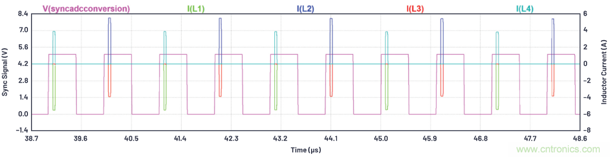 圖6.LT3999及其與同步引腳的切換關(guān)系。