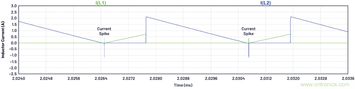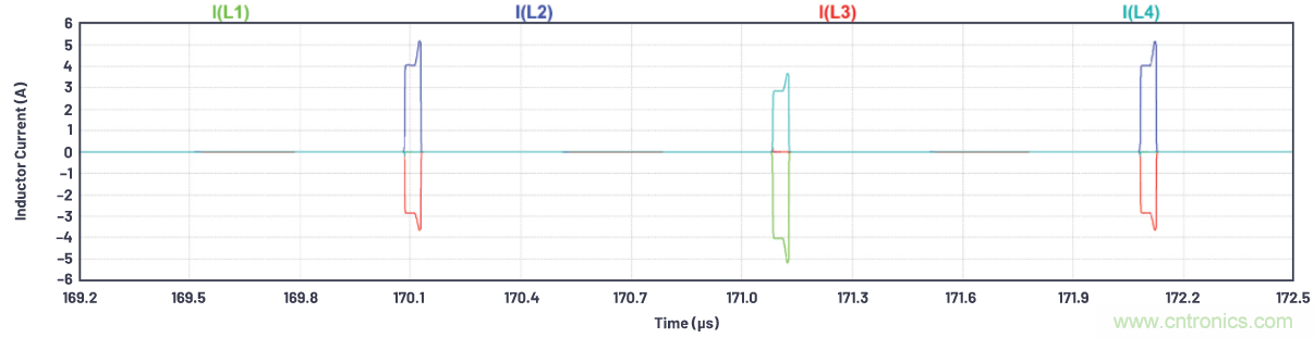 圖5顯示了變壓器處的電流波形(初級側(cè)和次級側(cè)電流),它更好地利用了變壓器,提供更好的EMI行為。