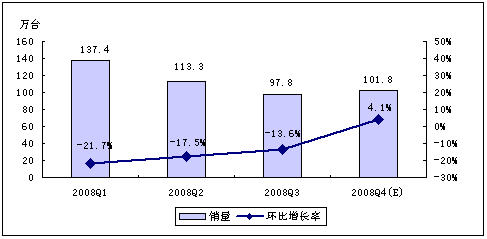 - 賽迪顧問(wèn)預(yù)計(jì),2008年第四季度,中國(guó)MP3/PMP市場(chǎng)銷(xiāo)量為134.0萬(wàn)臺(tái)