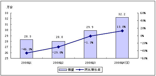 賽迪顧問(wèn)預(yù)測(cè),受全球經(jīng)濟(jì)危機(jī)以及中國(guó)經(jīng)濟(jì)發(fā)展趨緩等因素影響,2008年第四季度,MP3/PMP播放機(jī)行業(yè)將不會(huì)呈現(xiàn)快速增長(zhǎng)的勢(shì)頭,但年終禮品市場(chǎng)的啟動(dòng),在一定程度上仍然會(huì)拉動(dòng)整體市場(chǎng)向前發(fā)展。賽迪顧問(wèn)預(yù)計(jì),2008年第四季度,中國(guó)MP3/PMP播放機(jī)市場(chǎng)銷(xiāo)量為134.0萬(wàn)臺(tái),銷(xiāo)售額將達(dá)7.9億元。
