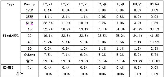 - 閃存型MP3播放機(jī)占據(jù)絕對(duì)主力,硬盤(pán)型退出市場(chǎng)