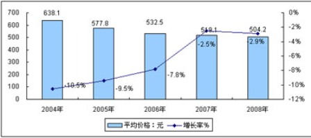 2008年,中國DVD播放機市場中的主導產品仍然是500元以下的較低端產品,中低端市場份額繼續保持其主力地位,臺式DVD機市場穩步衰退,價格下降空間有限,沒有較大波動,而移動DVD播放機、刻錄DVD播放機等高端產品的價格下降較快。