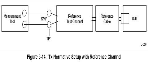 在USB3.0的TX的眼圖和抖動測試中,測量的是待測試信號經過參考測試信道后TP1點的眼圖和抖動。如下圖4中的Reference test channel即為參考測試信道,在規(guī)范中定義了long channel、short channel和3米電纜三種參考測試信道。如果使用long channel或者較長電纜,信號到達接收端時衰減比較大,眼圖已經閉合,USB3.0芯片接收端使用了CTLE均衡器對信號進行均衡后(CTLE均衡器介紹見本文最后一部分),信號眼圖的質量將大大改善,所以要求測試儀器分析出CTLE均衡器處理后信號的眼圖和抖動。