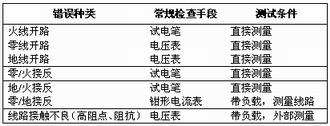 表4.1插座常見接線錯誤與檢查手段