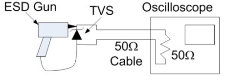 比較保護二極管鉗位電壓的最佳途徑是采用示波器來對發生ESD事件期間通過二極管的實際電壓波形進行屏幕截圖。這可以通過圖1所示的測試設置來實現。[page]