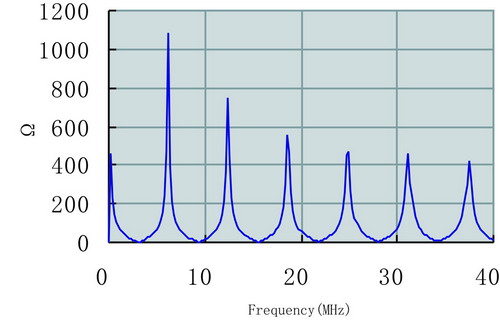 研究信道阻抗特性的目的主要是為了實(shí)現(xiàn)信道與發(fā)射機(jī)、接收機(jī)之間的阻抗匹配,當(dāng)阻抗失配時(shí),將造成信號(hào)能量的浪費(fèi),甚至出現(xiàn)啞信號(hào)點(diǎn)。由于中壓配電網(wǎng)的分支多,負(fù)載情況復(fù)雜,線路阻抗會(huì)隨距離、頻率、時(shí)間而變化,且變化范圍大,一般在幾十歐~幾百歐之間,圖2即為中壓電力線阻抗特性隨頻率變化曲線。故在實(shí)現(xiàn)寬帶網(wǎng)絡(luò)接入時(shí),阻抗匹配比較困難;目前,通常采用在耦合技術(shù)中通過犧牲匹配性能來適合線路側(cè)寬范圍內(nèi)阻抗的方法,也有系統(tǒng)在發(fā)射機(jī)端采用阻抗自適應(yīng)的功率放大設(shè)備等,以達(dá)到較好的阻抗匹配效果。