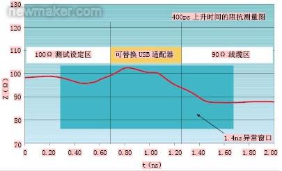 傳播通路中阻抗不連續性將會導致反射損失和信號失真。借助時域反射計(TDR),阻抗值可用時間函數直接顯示出來(見圖2),以便時刻監測該數值是否符合USB系統的規定系統公差。