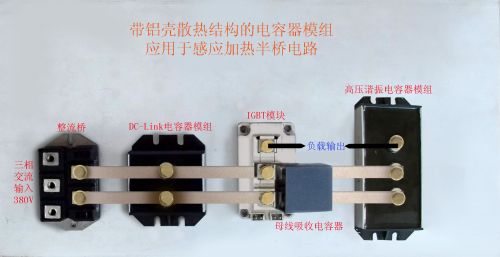 感應加熱設備電路結(jié)構分為兩種.從市面上的產(chǎn)品來看,30KW以內(nèi)采用的是半橋.30KW以上采用的是全橋.以半橋30KW機芯來看,薄膜電容器的使用情況如下: