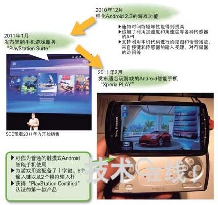 索尼愛立信發布了獲得SCE“PlayStation Certified”認證的首款智能手機“Xperia PLAY”。索尼愛立信還為強化Android 2.3的游戲功能做出了貢獻。2011年3月上市。
