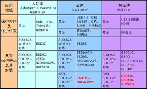 表1:便攜設(shè)備ESD保護應(yīng)用分類及典型保護產(chǎn)品(其中紅色字體為領(lǐng)先產(chǎn)品)。