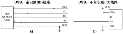 USB 2.0接口在便攜設(shè)備中的應(yīng)用范圍非常普及,在用戶的日常使用中也有著極高的使用頻率,故需要為高速的USB接口提供可靠的ESD保護。圖2顯示的是速度達480 Mbps的USB 2.0高速應(yīng)用在帶識別(ID)線路及不帶ID線路兩種情況下的簡明結(jié)構(gòu)示意圖。[page]