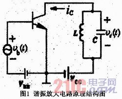 諧振電路原理圖中的LC并聯諧振回路用電阻Rc代替,就是典型的共發射極電路。它的電壓放大倍數是Au=βRc/rbe(這里是其絕對值,沒有考慮相位問題)。由于Rc對所有的頻率分量都呈現出相同的阻值(阻抗),故這個電路沒有頻率選擇作用(即在很寬的頻率范圍內,其放大倍數是一樣的)。若Rc用LC并聯諧振回路代替,由于諧振阻抗的頻率特性,使得在諧振頻率點及左右極小的頻率范圍內呈現出很高的阻抗,使電路的電壓放大倍數很高,而離開諧振點的其他頻率范圍都呈現出極低的阻抗(理想狀態下可以看做為零),使電壓放大倍數接近于零,于是這個放大器就有了對某一頻率有選擇性的放大特性,稱為諧振放大器。