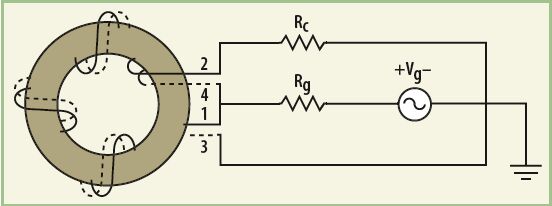 這種寬帶unun阻抗變壓器對測試電路、光接收器系統、帶寬帶阻抗匹配的微波電路,以及天線耦合也很有用。可用于高頻電路設計及仿真的現代計算程序在自己的工具箱里就收納了這種器件。寬帶unun阻抗變壓器包含了一個纏繞了雙絞傳輸線的環形鐵氧體磁芯,繞線間通過釉質膜隔離。結合常規傳輸線阻抗變壓器的設計元件,有可能建立起一個真正的寬帶組件。對1:4阻抗轉換比而言,這種設計方式可提供很高的效率。