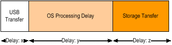 雖然USB速度快了十倍(從480Mbps 到 5Gbps),但是真正的吞吐量將遠(yuǎn)遠(yuǎn)低于理論值,因?yàn)閁SB延時(shí)(X)比操作系統(tǒng)處理延遲(Y)和存儲傳輸延遲(Z)都小得多,其相對于總延時(shí)可以忽略 不計(jì)。Z延時(shí)可以通過選擇更好的存儲設(shè)備來改進(jìn),但是Y延時(shí),則需要通過更有效地系統(tǒng)設(shè)計(jì)來管理。