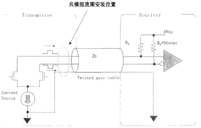 在以這類方式產生噪音的情況下,采用一個共模線圈來抑制噪音的方法是非常有效的,因為共模線圈可以抑制共模噪音,但對差分信號的影響很小。然而應該注意的是,由于信號的頻率不同,外圍電路和元器件不相同,共模扼流圈的選擇和貼裝也不相同。