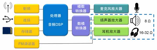 近年來,智能手機集成的功能越來越多,但在基本的音頻放大應用方面,在繼續優化性能表現及用戶音頻體驗方面仍有繼續提升的空間。原因是智能手機存在著特殊的音頻要求,例如:智能手機存在基帶/應用處理器、調頻(FM)廣播、藍牙(耳機)等多種音頻輸入源;編解碼器(CODEC)可以集成在模擬基帶中,也可獨立存在;多數情況下最少是揚聲器放大器保持單獨存在(不集成),從而提供足夠輸出功率;耳機放大器外置,配合高保真(Hi-Fi)音樂播放。