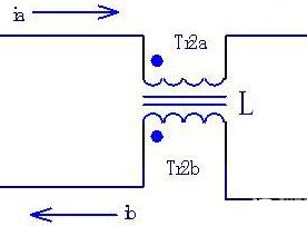 圖1所示的是共模電感的濾波電路,Tr2a和Tr2b就是共模電感L的兩個線圈。這兩個線圈繞在同一磁芯上,匝數(shù)和相位都相同。這樣,當(dāng)電路中流過電流ia和ib的大小相同、方向相反時,電流在同相位繞制的電感線圈中產(chǎn)生反向的磁場而相互抵消,磁芯中沒有交變的磁通量產(chǎn)生。