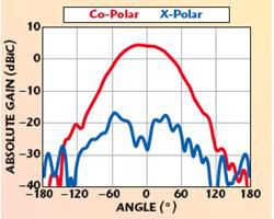 螺旋天線很早以前就開始用于軍事應(yīng)用中的測(cè)向和通常的威脅識(shí)別。圖1給出了一種典型的2到18GHz腔基螺旋天線,圖2給出了使用這種天線進(jìn)行的一次電磁仿真,顯示了此構(gòu)造不同部分上的場(chǎng)強(qiáng)。在這些應(yīng)用中,通常要求天線的幅度和相位每一個(gè)都是統(tǒng)一樣式。還要求主瓣應(yīng)該擁有平滑的曲線,沒有任何拐點(diǎn),即為單調(diào)的。這種天線典型輻射圖樣如圖3所示。通常這些應(yīng)用中更重要的是控制波束形狀并使各個(gè)天線元的性能匹配,而不是使天線增益最大化。對(duì)于許多商業(yè)通信系統(tǒng),更重要的是給某個(gè)區(qū)域有效地填充信號(hào)而不是產(chǎn)生非常精確的波束形狀。