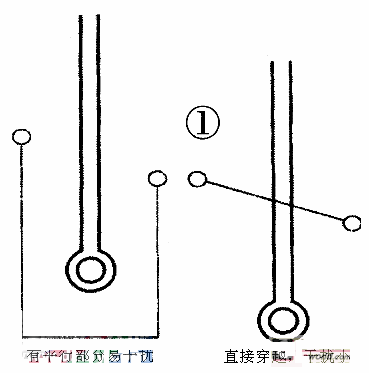 通常低電平、高阻抗端導線容易受干擾,布線時應越短越好:輸入、輸出端用的導線應盡量避免相鄰平行,最好加線間地線,以免發生反饋耦合。平行線效應與長度成正比,按信號去向順序布線,忌迂回穿插。遠離干擾源,盡量遠離電源線,高電平導線:實在躲不開干擾源時,不能與之平行走線,雙面板交又通過,單面板飛線過渡。如圖1所示。