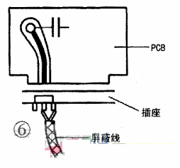 高頻電路中,印制導線分布參數對信號影響大,且不容易進行阻抗匹配,可局部使用專用屏蔽線連接,如圖7所示。