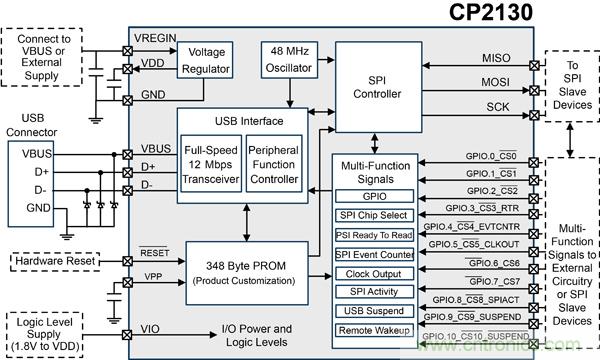 圖1:Silicon Labs推出USB轉(zhuǎn)SPI橋接芯片CP2130橋接控制器