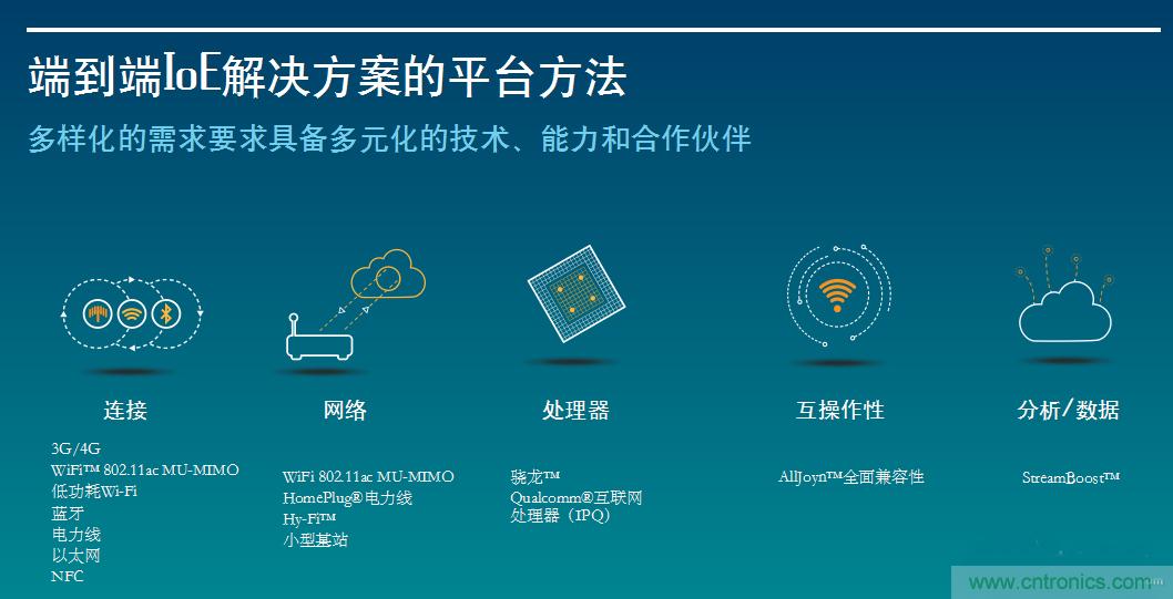 Qualcomm創銳訊物聯網市場經理貝曉珊女士在 “IoE互聯家庭解決方案概述”主題演講中談到,盡管不同的分析機構給出了不同的數據,但結論是統一的,即物聯網市場規模的巨大化。而高通創銳訊將致力于端到端的IOE解決方案,助力完善智能家居生態系統。會議上貝曉珊詳細介紹了兩款WIFI芯片產品QCA4004和QCA4531以及AllJoyn SDK軟件平臺。